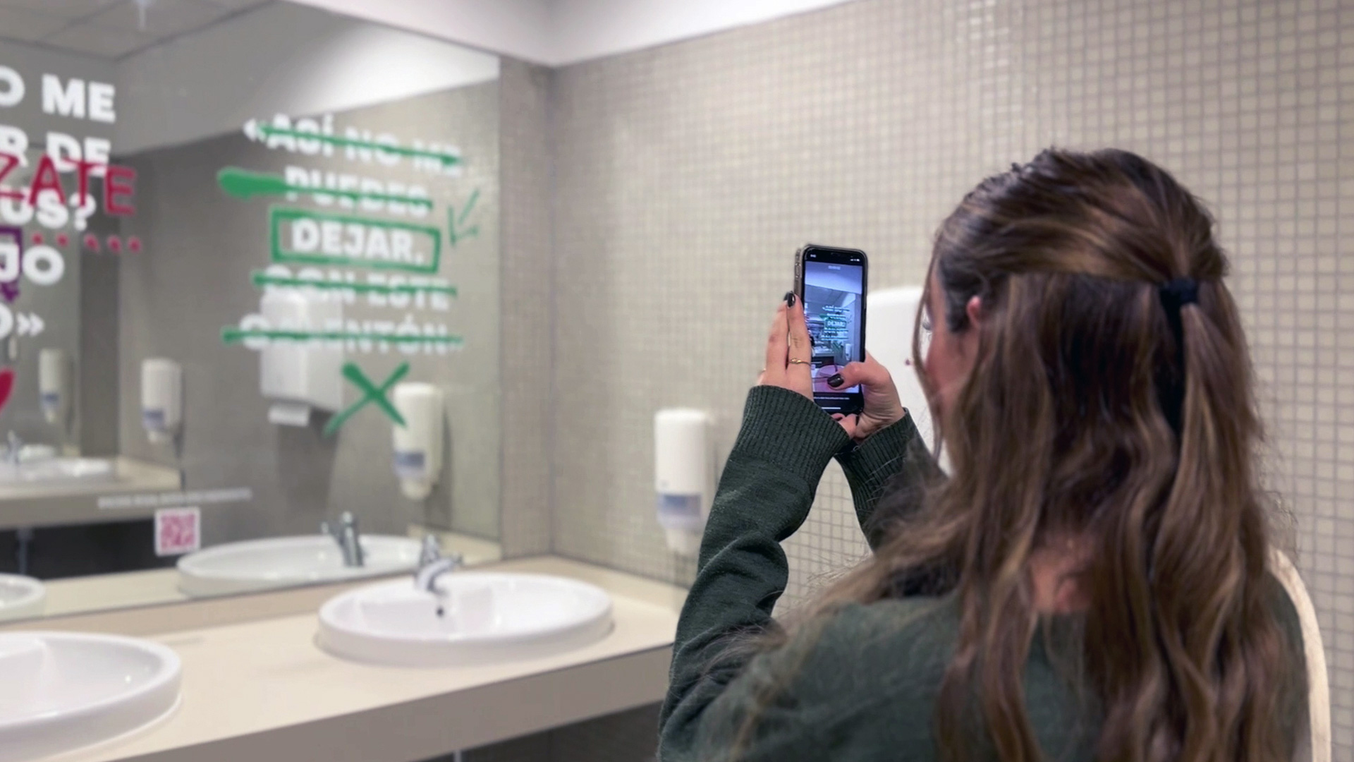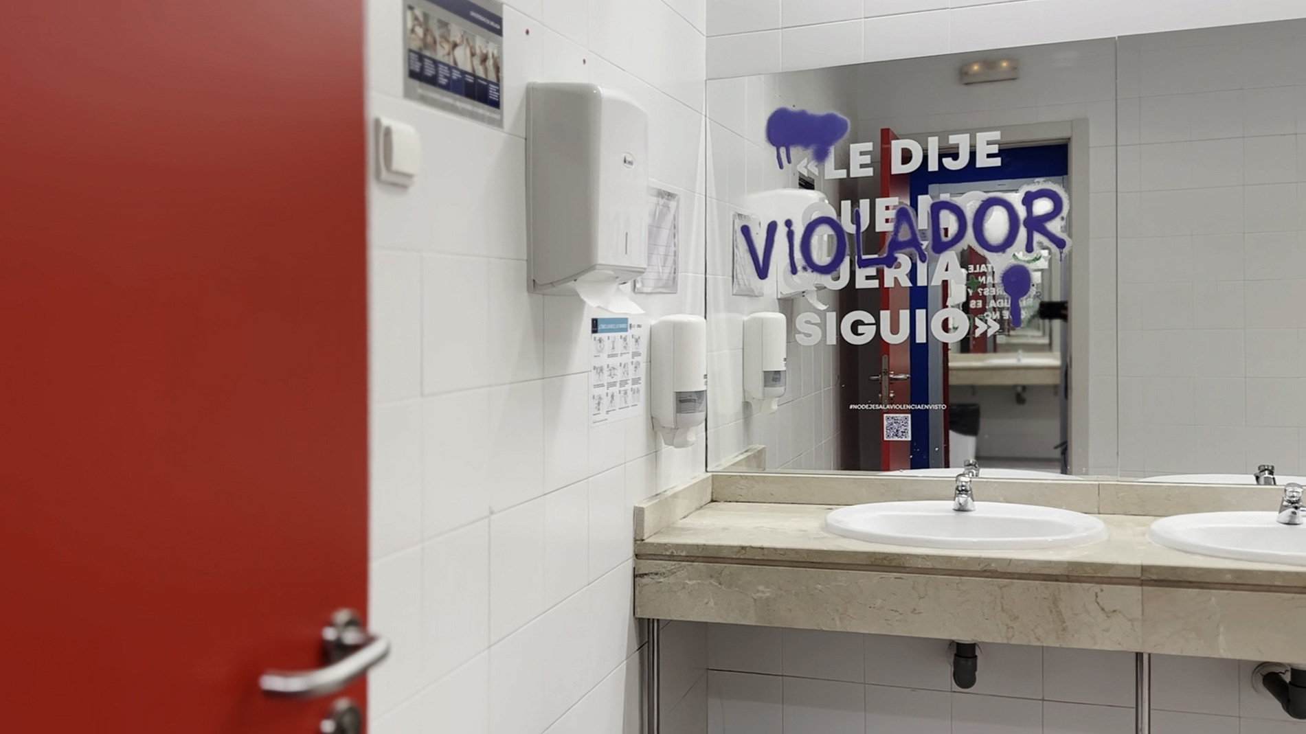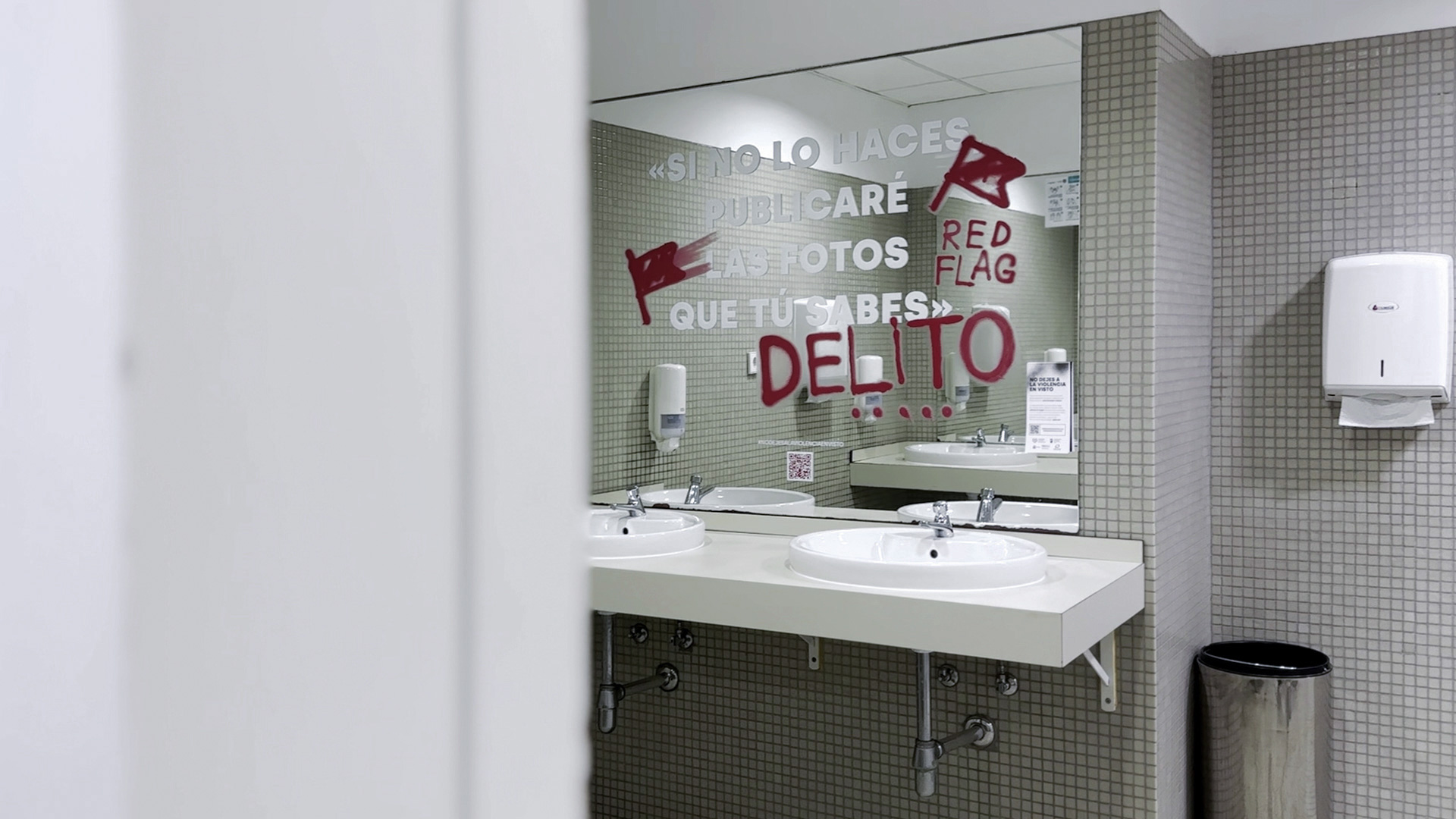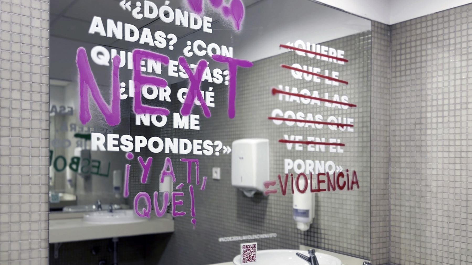 Partimos de investigación sobre conductas, códigos y vocabulario de la generación objetivo, apoyándonos en informes oficiales y en un grupo de control de estudiantes. Desarrollamos el concepto creativo “No dejes a la violencia en visto” y una estrategia que combinaba copywriting, lenguaje visual y activación en el campus. Vinilamos los espejos de los baños de 19 centros universitarios con más de 50 mensajes reales que visibilizaban violencia normalizada, acompañados de intervenciones gráficas que la señalaban. Cada pieza se adaptó al contexto, al público y al espacio, integrando QR hacia contenidos informativos y recursos de ayuda. La campaña combinó street marketing, web, gabinete de prensa y difusión digital.