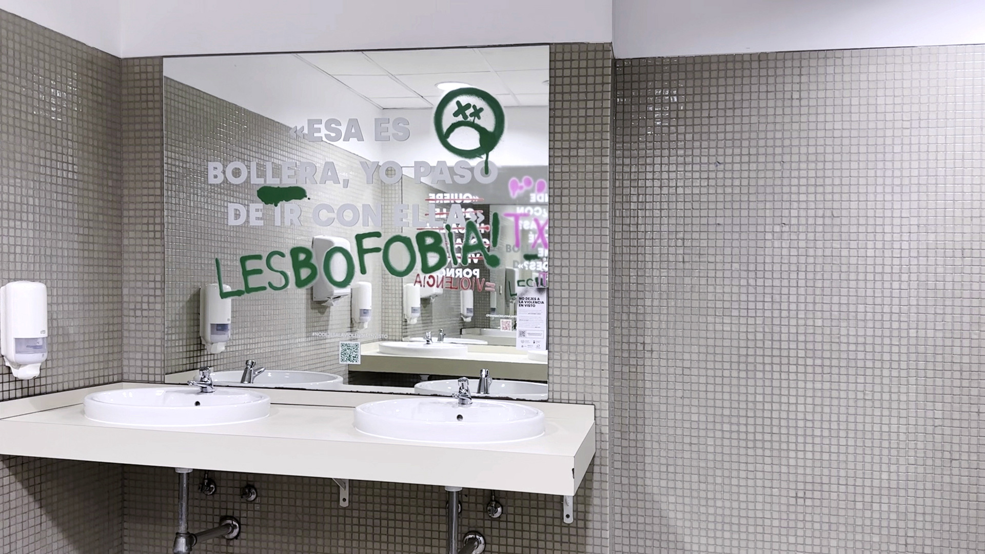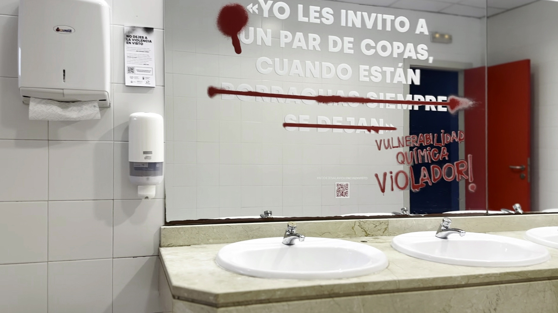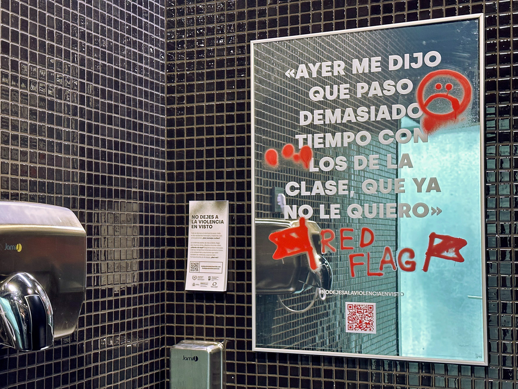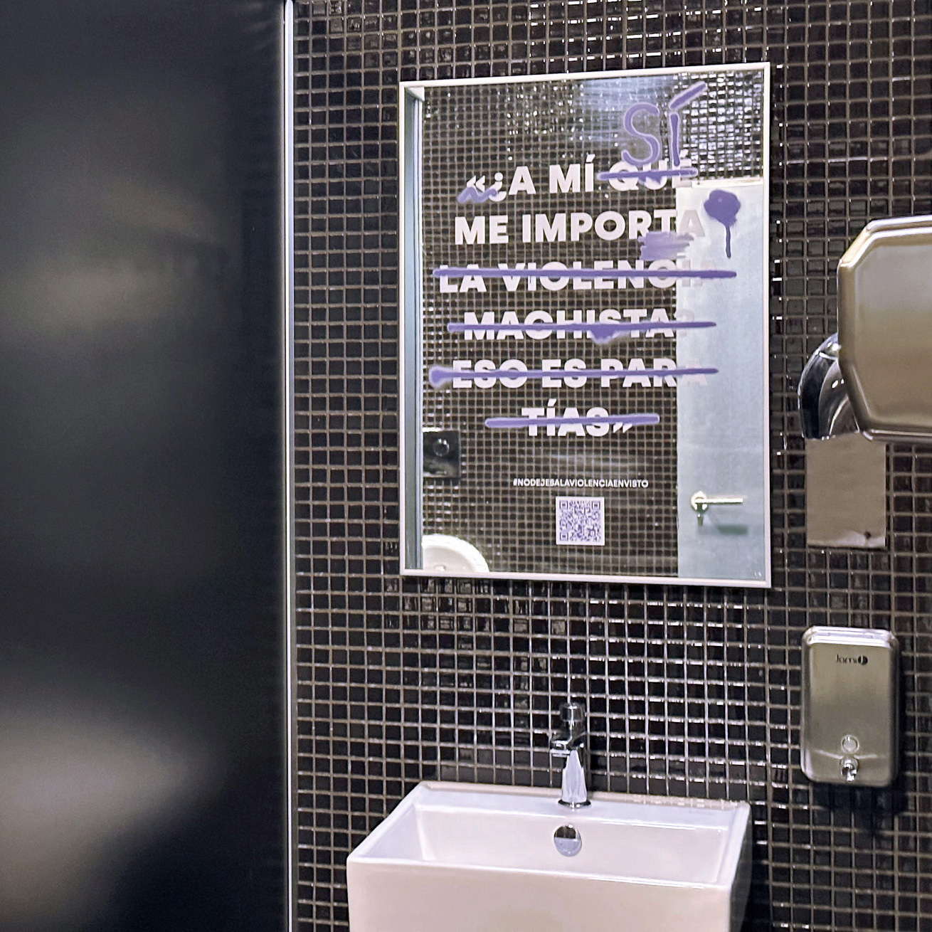 Partimos de investigación sobre conductas, códigos y vocabulario de la generación objetivo, apoyándonos en informes oficiales y en un grupo de control de estudiantes. Desarrollamos el concepto creativo “No dejes a la violencia en visto” y una estrategia que combinaba copywriting, lenguaje visual y activación en el campus. Vinilamos los espejos de los baños de 19 centros universitarios con más de 50 mensajes reales que visibilizaban violencia normalizada, acompañados de intervenciones gráficas que la señalaban. Cada pieza se adaptó al contexto, al público y al espacio, integrando QR hacia contenidos informativos y recursos de ayuda. La campaña combinó street marketing, web, gabinete de prensa y difusión digital.