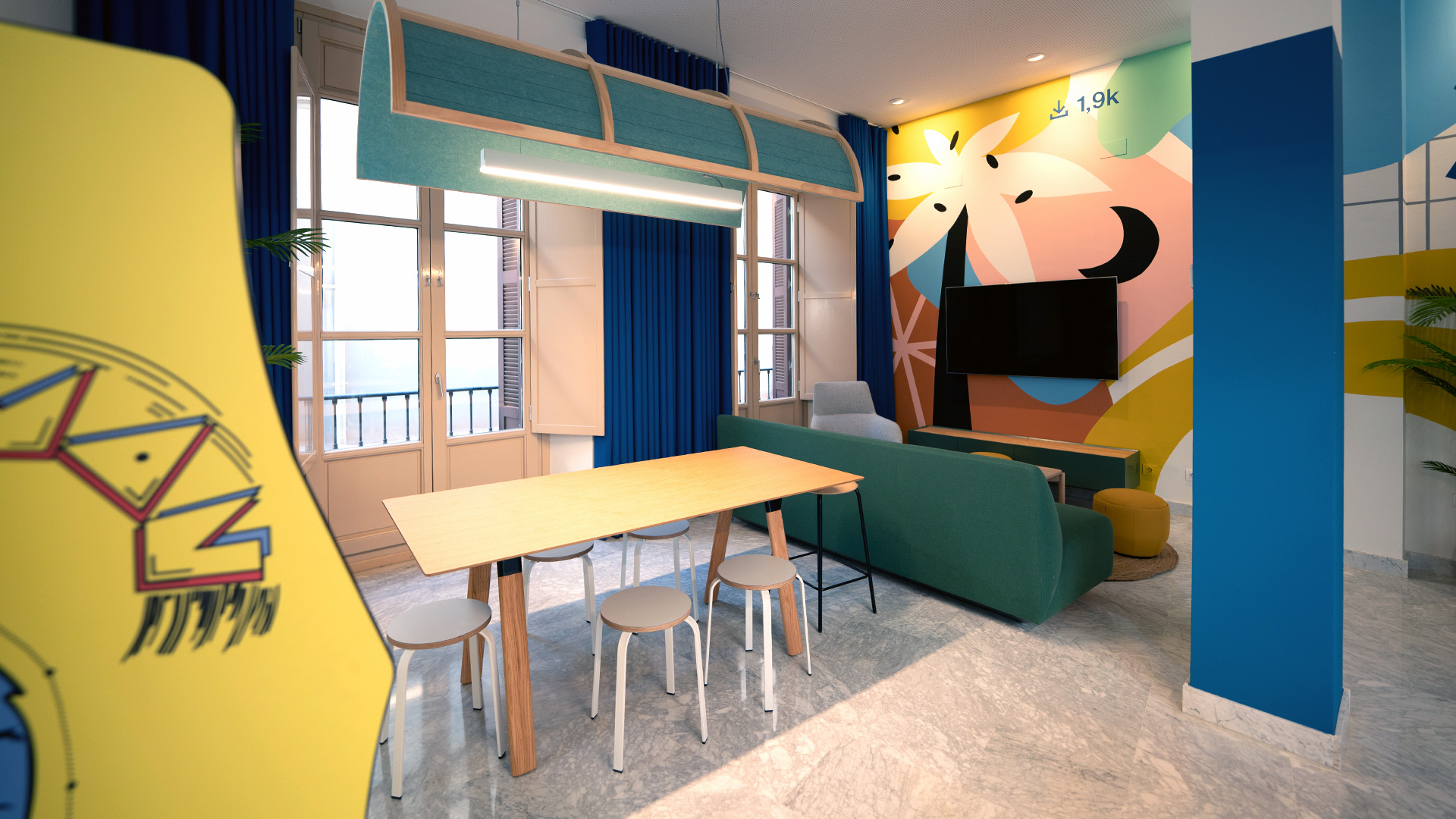 Uptodown necesitaba que su nueva sede reflejara su cultura de empresa: creatividad, tecnología y sentido de comunidad. El objetivo no era solo diseñar un espacio funcional, sino construir un entorno que reforzara el bienestar del equipo y transmitiera su personalidad a visitantes, partners y talento. El reto era integrar marca, interiorismo y experiencia en un mismo lenguaje.